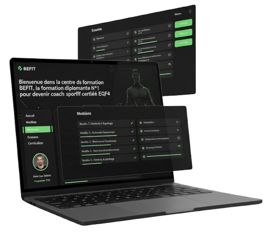 L’Académie Virtuelle BEFIT te permet d’avancer étape par étape avec des exercices pratiques, des quiz interactifs, des questions/réponses à chaque leçon, des cours en direct, des replays, une communauté active et un accès direct à tes coachs.